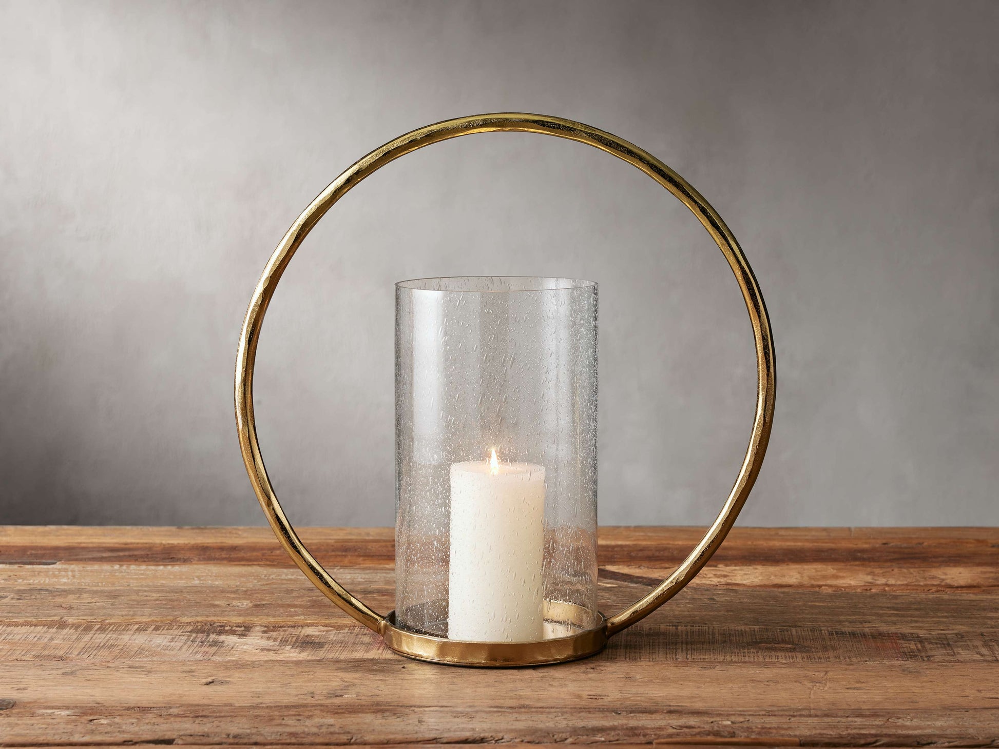 - A handcrafted bubble glass cloche is surrounded by a halo to complete the modern, clean-lined aesthetic of our Circle Hurricanes.