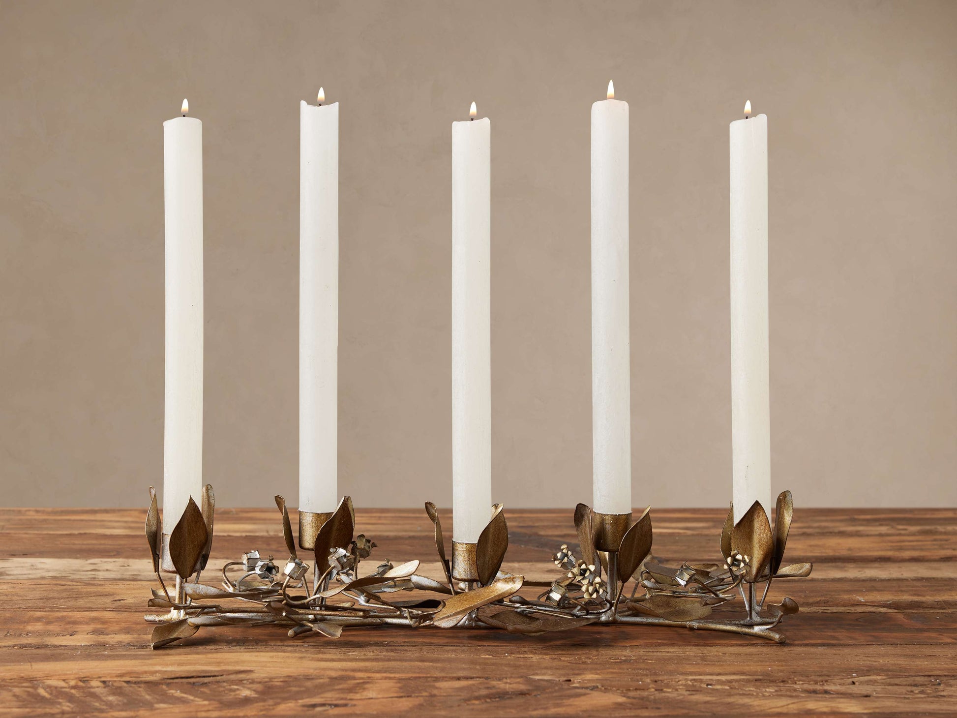 - Each taper holder is completed with a hand-applied champagne gold finish, lending each piece its warm, timeless glow.