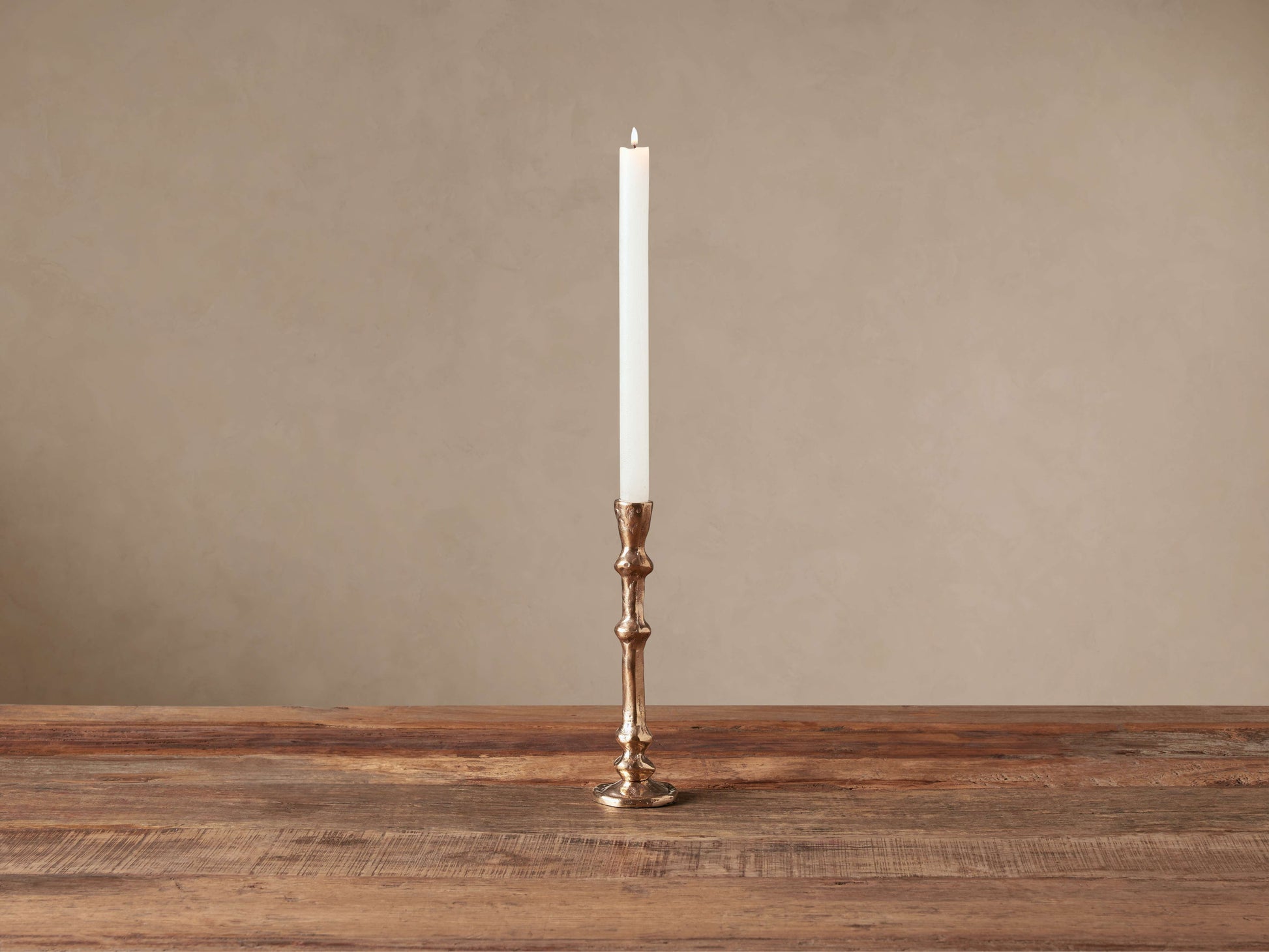 - Accent your tablescapes and décor vignettes with luxurious bronze that shimmers with candlelight. Our Lotus Taper Candle Holders feature cast bronze and abstract details for a classic-meets-modern appeal.